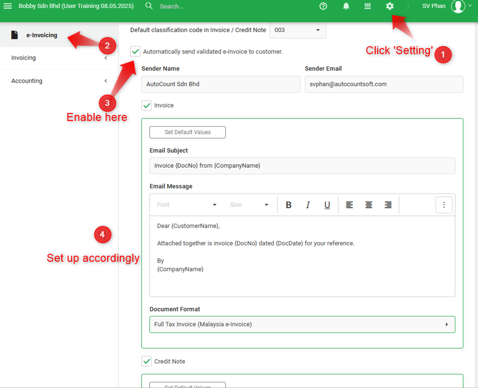 AutoCount makes e-Invoicing easier for you. Once validated, your e-Invoice and credit note will be automatically sent to your customers.