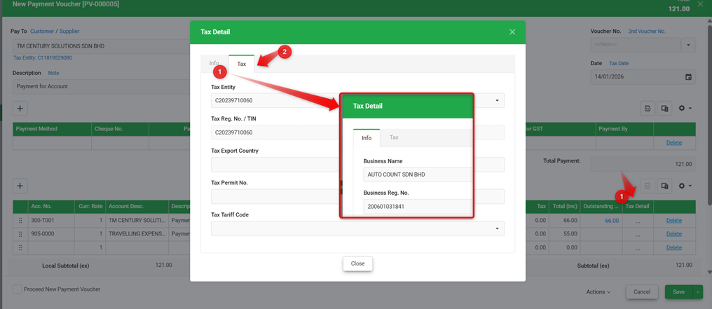 Cash Book Entries and Journal Entry have been enhanced to automatically capture the Business Name and Business Registration Number when a Tax Entity is selected, ensuring more complete and accurate records.