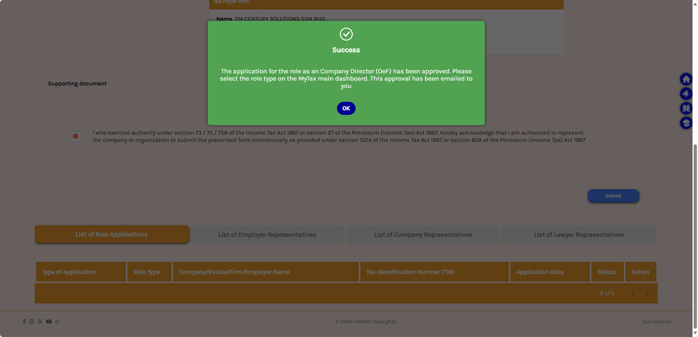 *If this does not prompt, you might want to wait for some time because it is not updated into MyInvois Portal yet.