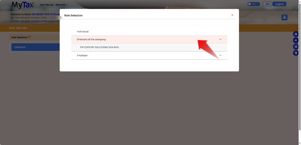 5. Go back to MyTax home page and you will then be able to access your company from there.