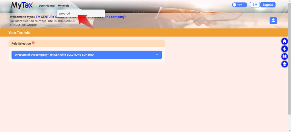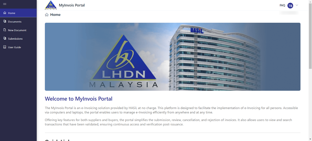 11. You will then be directed to your company MyInvois Portal page.