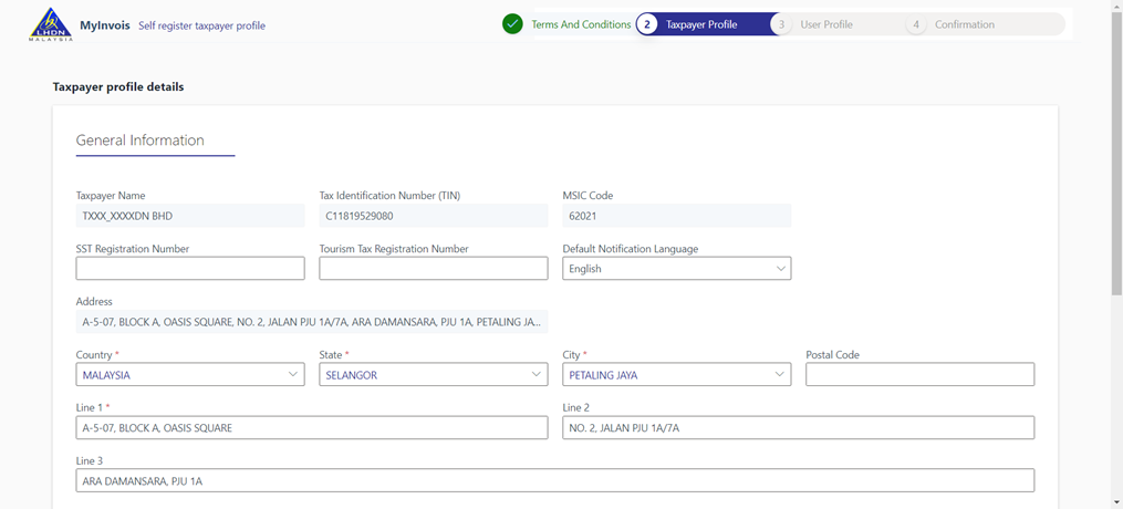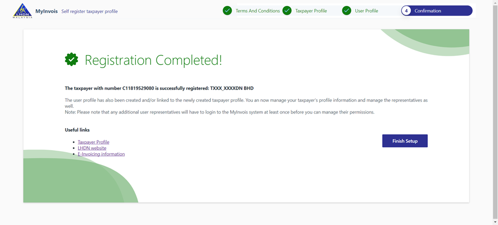 6. After linking your company, go to MyInvois Portal and setup your company / taxpayer profile.