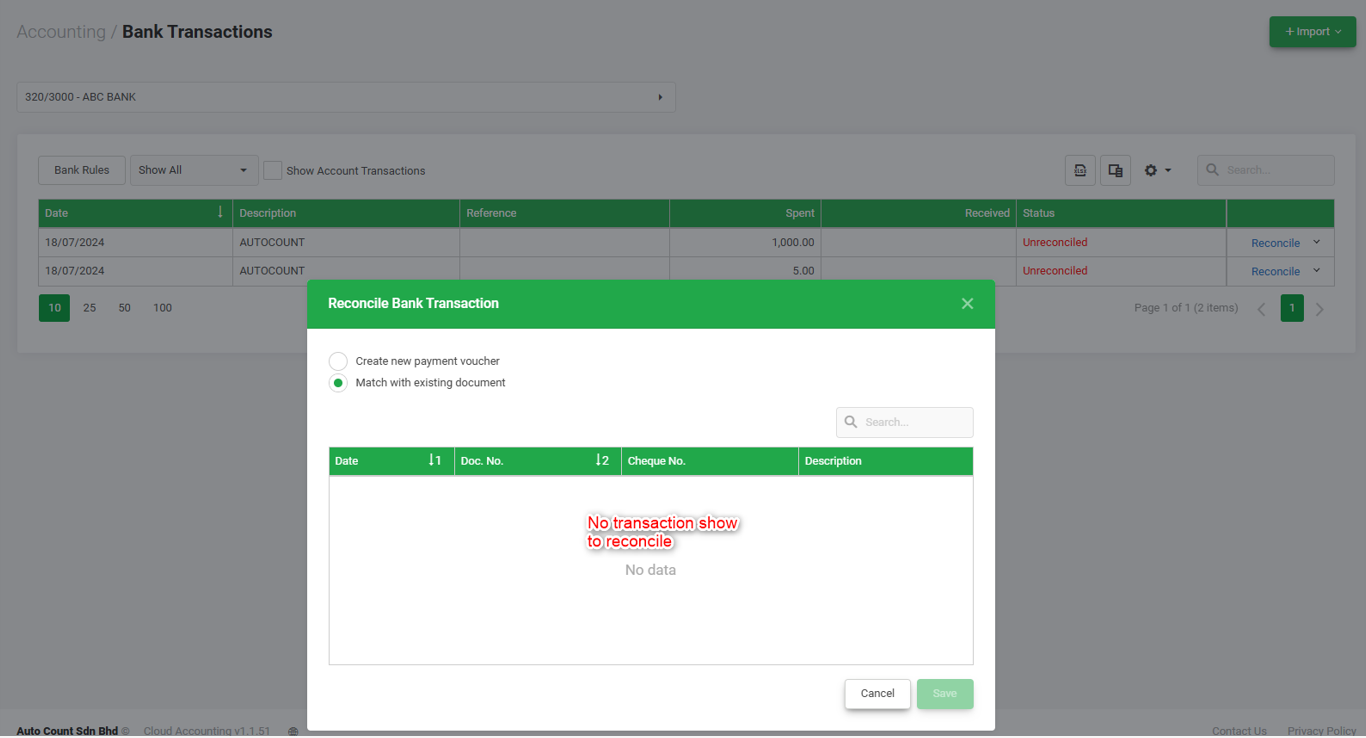 5) Now, you should be able to see the transactions and perform reconcile now.